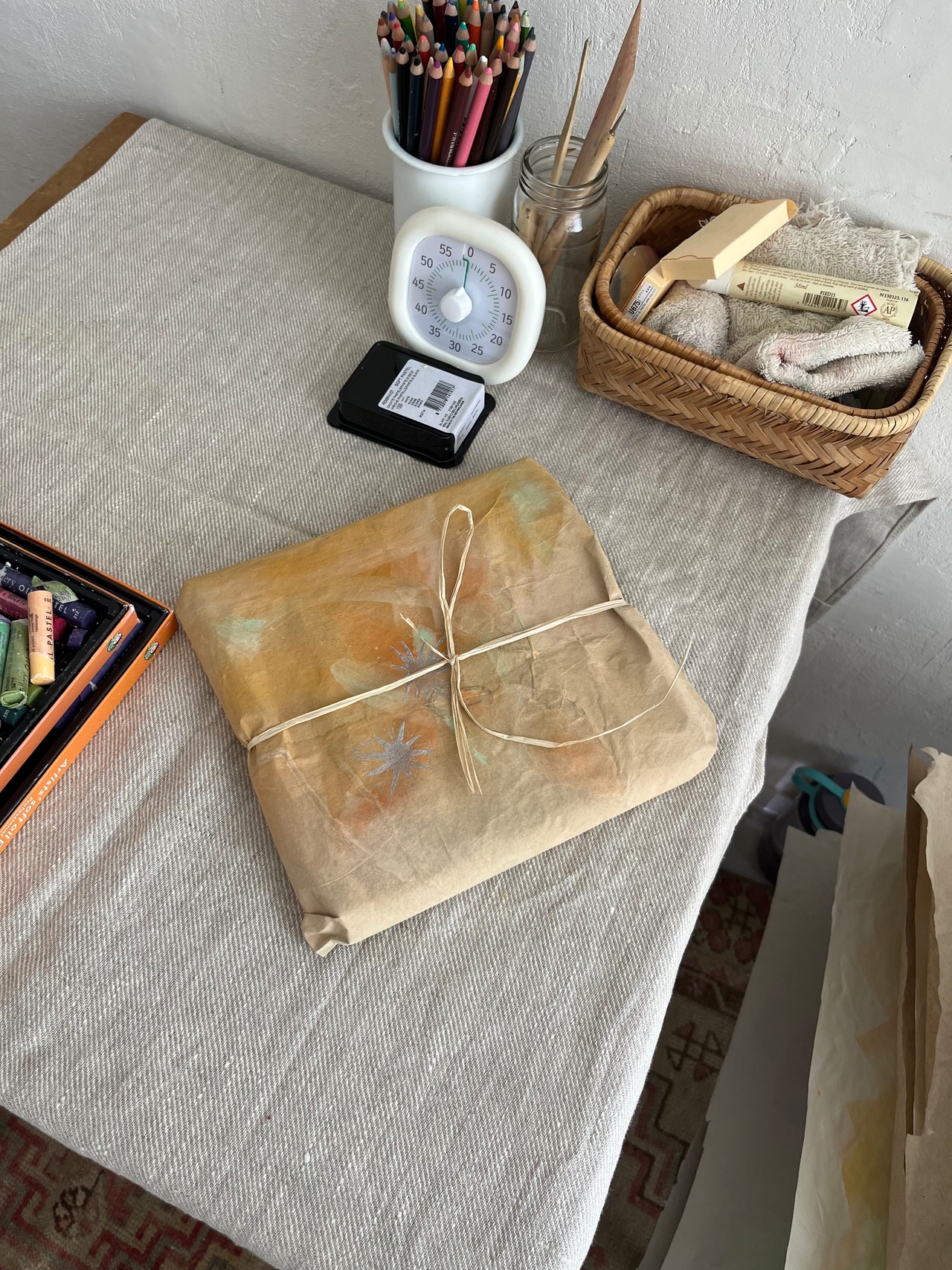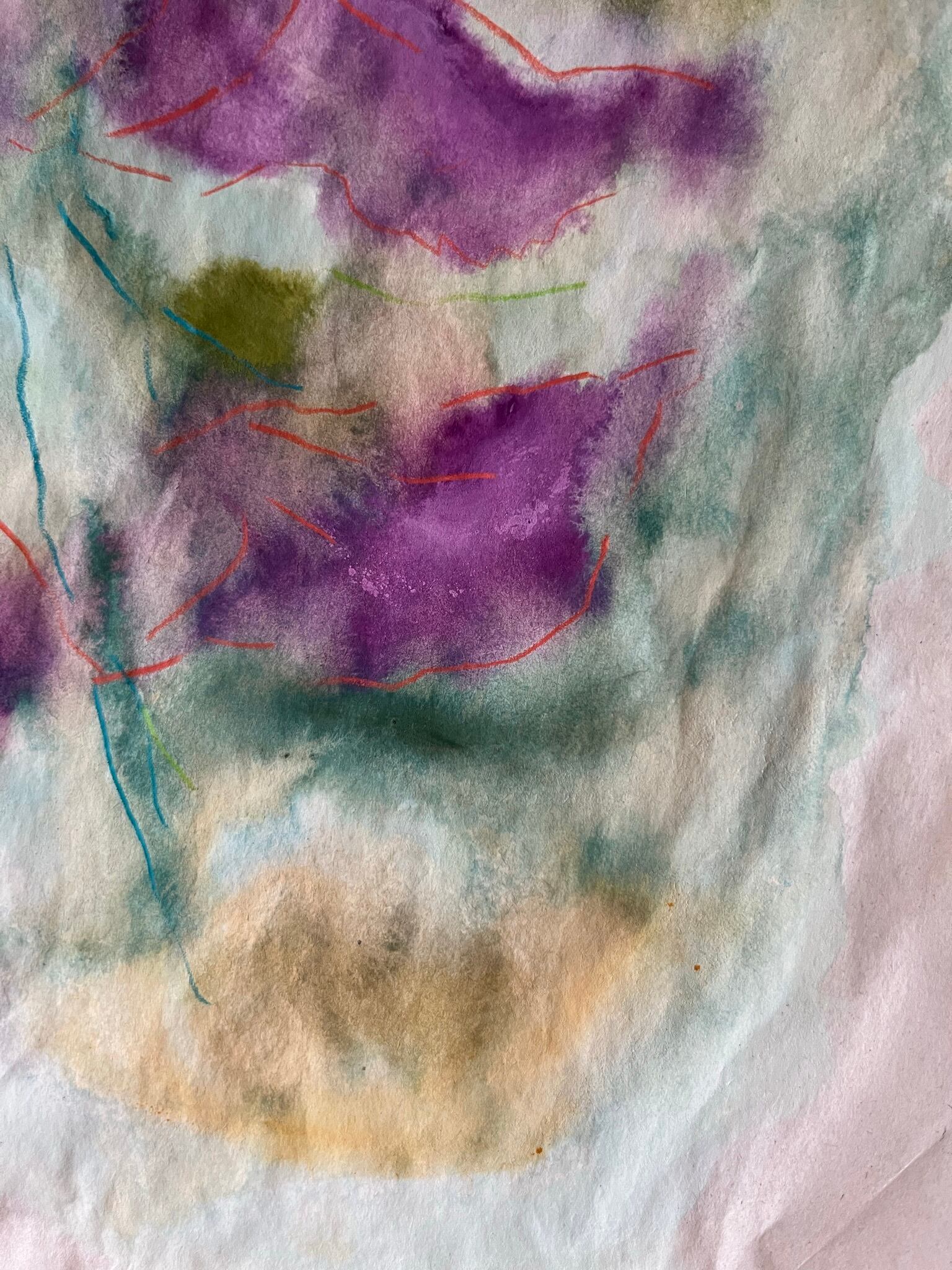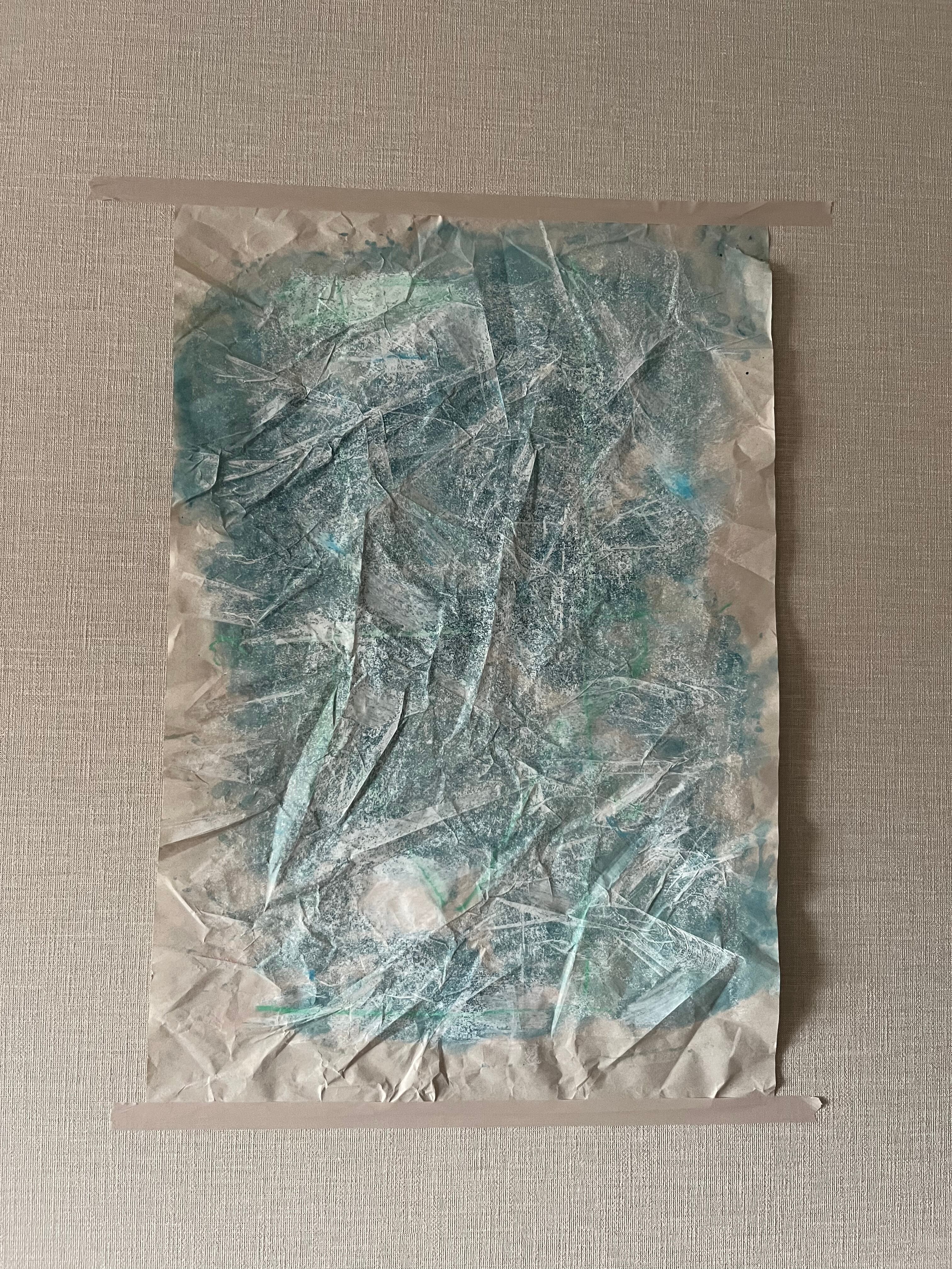 ※一度ぐしゃぐしゃになった紙を手で伸ばして彩色しますので、紙のシワは残っています。