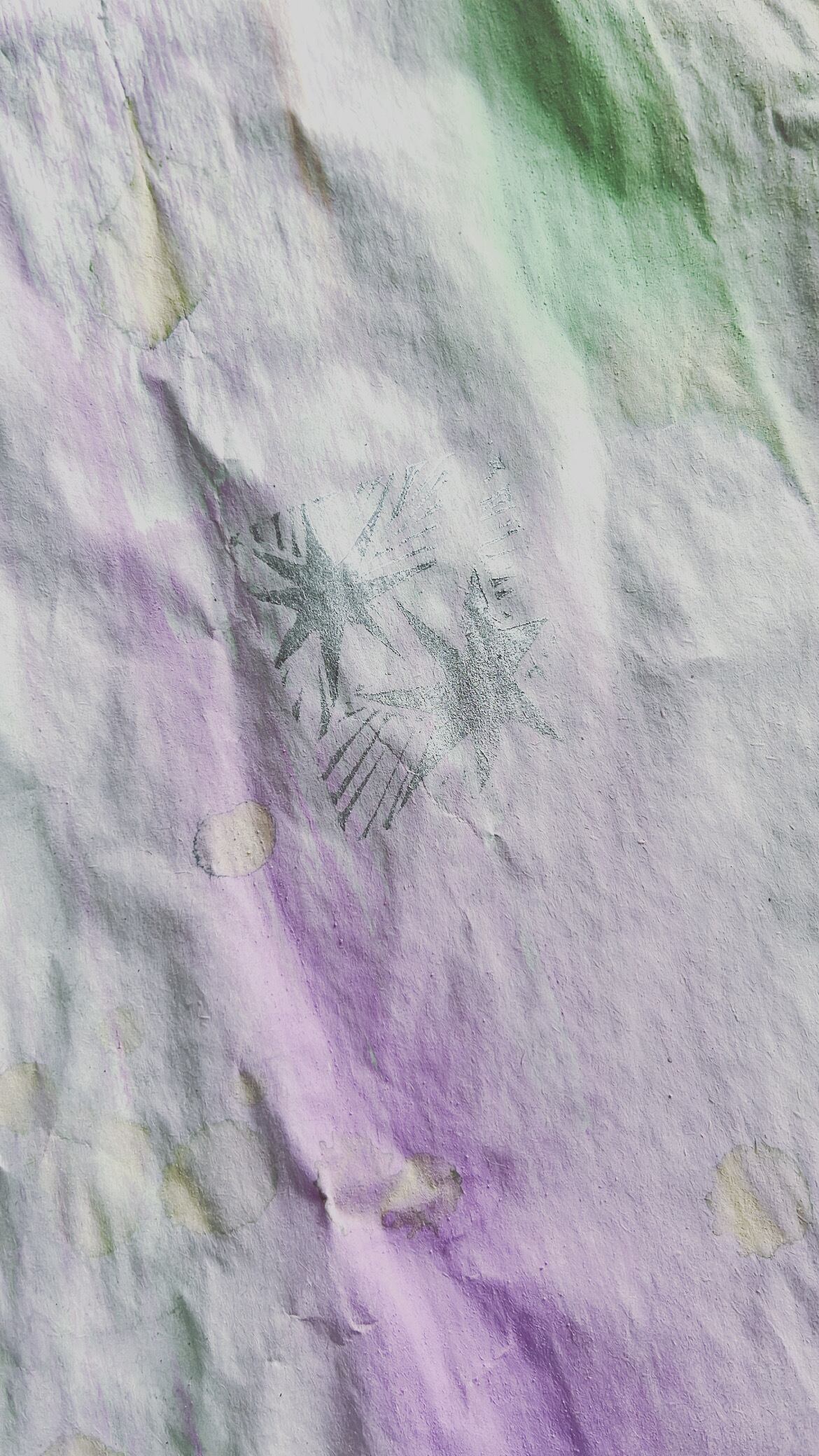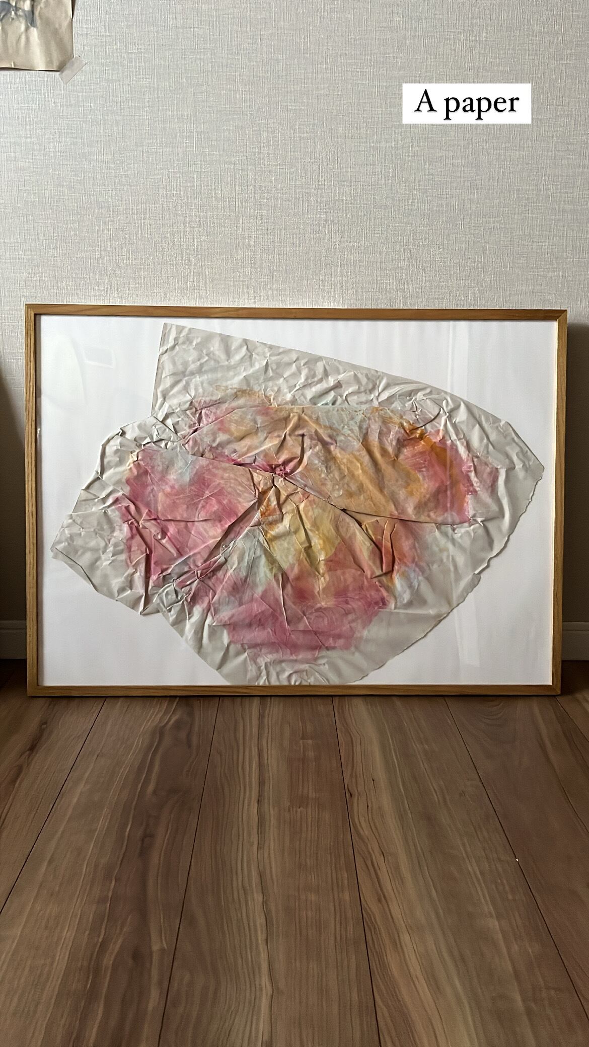 A Paper = 緩衝材として使用された(使用済み)紙にアクリル絵の具で彩色したもの